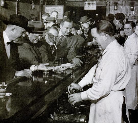 One of New York’s best known hangouts was Bleeck’s [pronounced Blake’s] Artist and Writers, where reporters from the New York Herald were said to dominate. From its beginnings in 1925 until 1934, part of which time it was run as a so-called club in order to avoid the liquor ban, it barred women. Finally they were admitted, inspiring the unfunny comment from an old-time member, “There’ll be mayonnaise on the steak next week.” [Above: newspaper men play game to determine who will pay for drinks at Bleeck’s, 1945]
