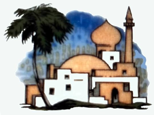With its minaret, the building reached 60 feet in height and was visible for miles along all three major streets that crossed there. The minaret was used for advertising with neon lighting and a crescent on top. The illustrations used for this building, whether on the restaurant’s dinnerware [shown above] or in advertising, took great liberty in portraying it. [Below: April 1929 advertisement that imagines the building with two domes, four minarets, and palm trees!]