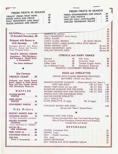 Despite not owning a true Shelton guide, I got a glimpse of a few pages from one in 1968 — when he truly did author it. In it he reviewed Rue Lepic, which he noted was a well-liked restaurant that all his readers wanted him to review, and Sear’s, which was famous for its breakfasts. [Note: the page from the Sear’s menu shown above is earlier than his review.]