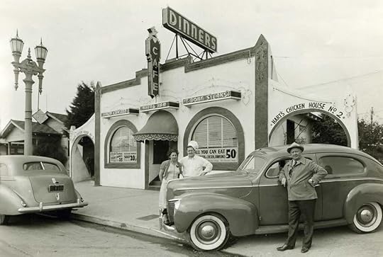 The man in the foreground is almost certainly Mr. Hart. He proudly stands next to his new car, a 1940 Hudson, while his employees smile in the background. He seems unaware that his restaurant faces a doubtful future.
