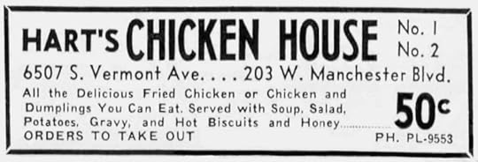 The restaurant’s history turned out to be difficult to research, but I did learn that both restaurants were in Los Angeles, and that No. 2 was at 203 W. Manchester Blvd. and No. 1 was on S. Vermont.