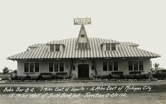 I’ve been exploring my postcard and ephemera collection and picking out favorites to see what I can find out about them. Judging from the geographical identification on this card – indicated by highway numbers and miles from towns, it clearly was a roadside enterprise catering to car and truck traffic on Route 20 in Indiana.
