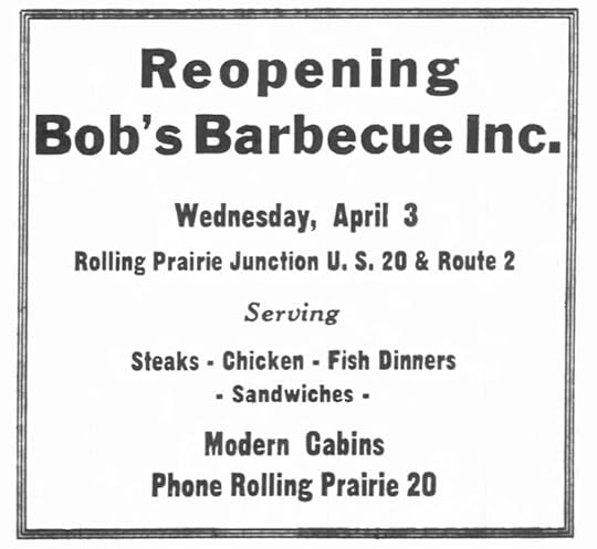 Bob’s initially opened in 1927, with a smaller building and was enlarged as shown above in 1932. In addition to getting business from traffic on Route 20, it also served as a stop for buses, with 10 to 15 stopping there daily. With the addition, the restaurant could host 150 patrons.