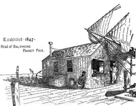 Restaurant is a rather glorified term for his first venture on land. He and his former ship’s cook took over a place on the Baltimore Packet Pier in Boston in 1847. It was tiny, seating only twenty [pictured above]. Nonetheless it was popular and in 1850 they built a new place on the pier, describing it as “beautiful, spacious and commodious.” They named it the Mercantile Dining Saloon. [1851 Advertisement with misspelled name of Marston’s partner] Perhaps it also proved to be too small, because in 1853 they moved and “thoroughly renovated” a new place at 13 Brattle Street.