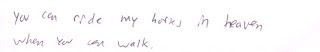 I was sure that because I wasn’t his animal science teacher or ranching buddy I’d never make his top 5 favorite people, but I must rank SOMEWHERE because when he turned in his grading sheet, he added a short comment at the end - offering me one of the greatest things he could ever offer me in all the eternities!