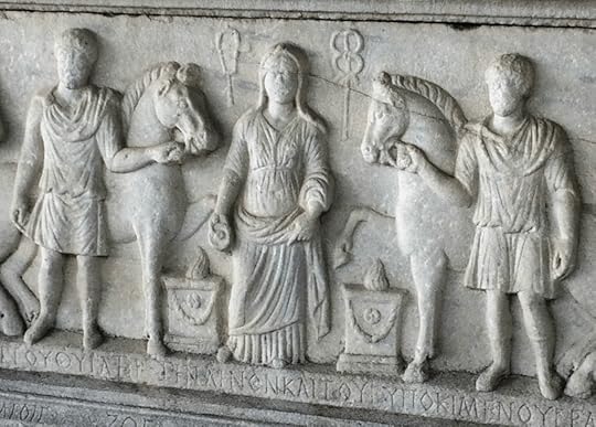 A Hadrianic-era marble sarchophagus of a woman named Annia Tryphaina, also found in Thessalonica, shows a scene of Isis ritual being conducted by a veiled priestess (perhaps Annia herself?).