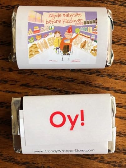Candy wrappers with the book cover on one side and the recurring “Oy!” from the book on the back. They were a hit!
