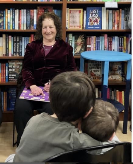 At book launch, I’m smiling at my oldest grandchild snuggling with the youngest in the audience