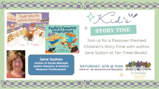 The post Passover Storytime Coming Soon! appeared first on Jane Sutton.