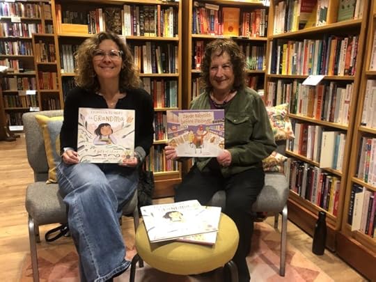 Alison Goldberg with her picture book 18 FLOWERS FOR GRANDMA and me with ZAYDE BABYSITS BEFORE PASSOVER