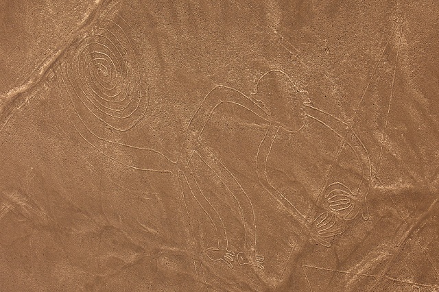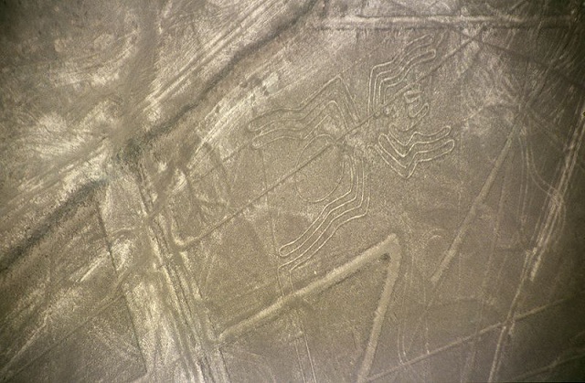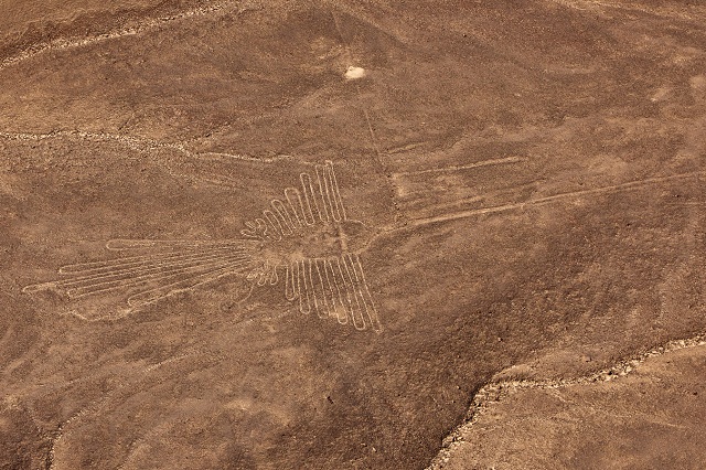 The Nazca Lines are giant sketches drawn in the desert of western Peru by ancient peoples. The drawings were created on such a large scale is such that the shapes can be readily discerned only from the air, leading to a variety of theories about their purpose.