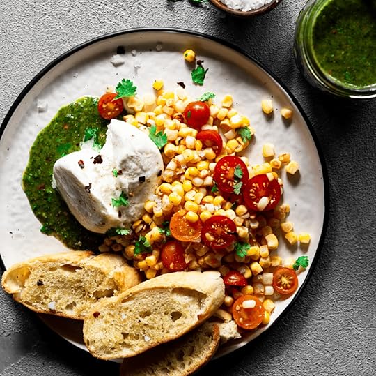 Burrata and Corn Salad with Heirloom Tomato Vinaigrette by A Simple Pantry