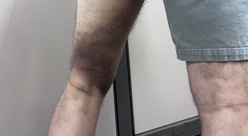 Also, on a personal note. I had to stop running for 6 months as I ruptured my hamstring, detaching it from the bone in June. The pattern of bruising is common for significant hamstring injuries.