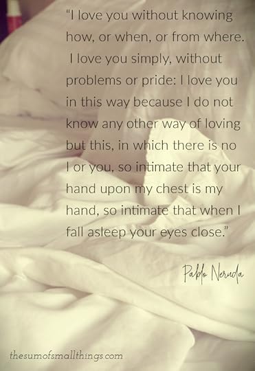 I recently stumbled upon the works of poet Pablo Naruda. I’m usually not a reader of poetry, preferring my poetry in the form of music, but while reading an otherwise silly book, I stumbled across Naruda’s words and fell in love.