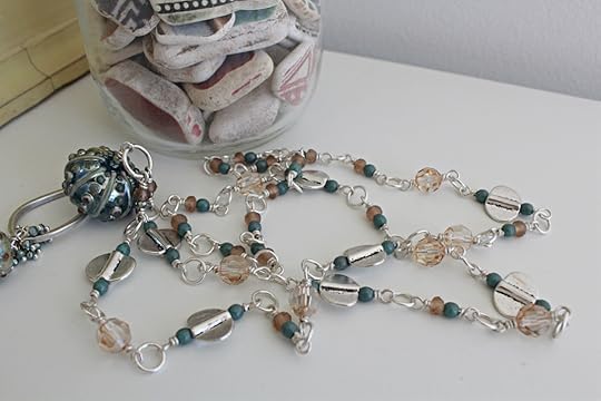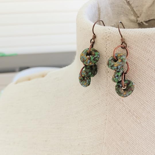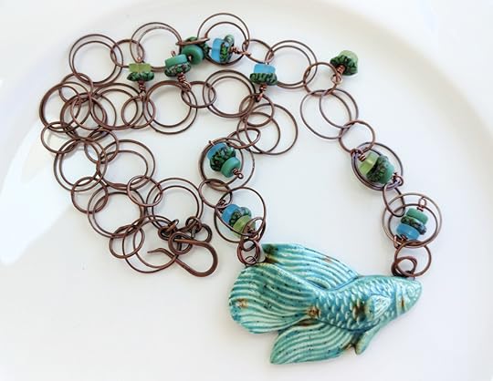 The airy copper chain made me think of bubbles (bloop bloop!), and I wired some of the Czech glass and Greek ceramic disks together and framed them in the chain.