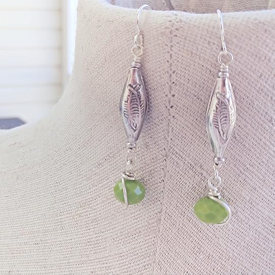 I made a pair of earrings to go with the necklace with two of the Czech glass beads and some Thai silver fish beads from my stash.