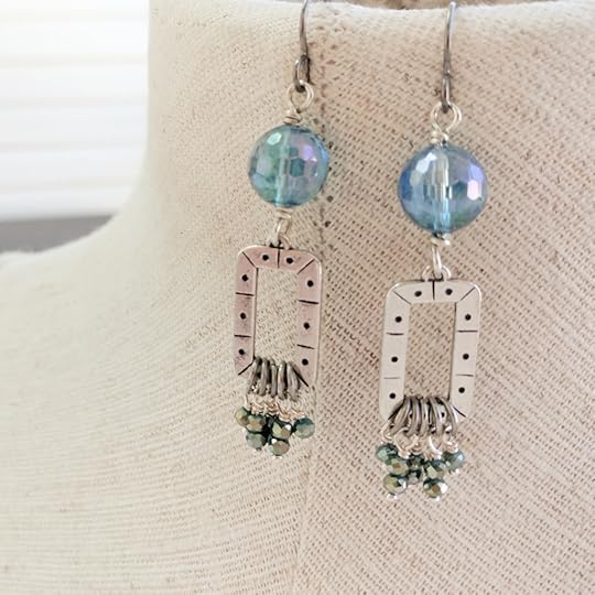 I used more of the tiny sparklies, aqua ora beads, and two toggles (liberated of their bars) to make matching earrings.