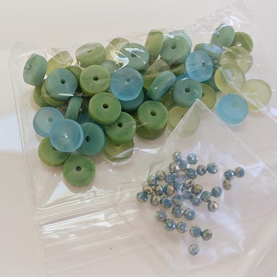 Don’t the fish remind you of Bonefish Grill’s logo?After I got the pendant and toggle sorted, I decided to use as many beads as I could from the soup Lisa sent me and create an ocean-inspired theme throughout. Some of the pieces incorporate just a few of the beads, with so many of them inspired by the tiny super-sparkly Czech glass. And when I say tiny, I mean tiny.