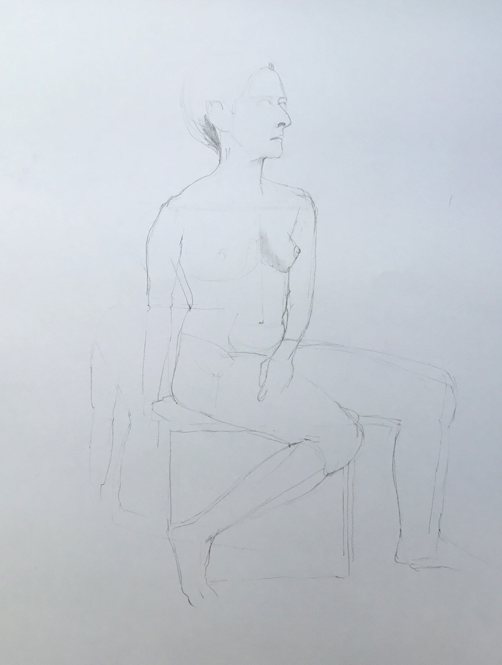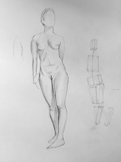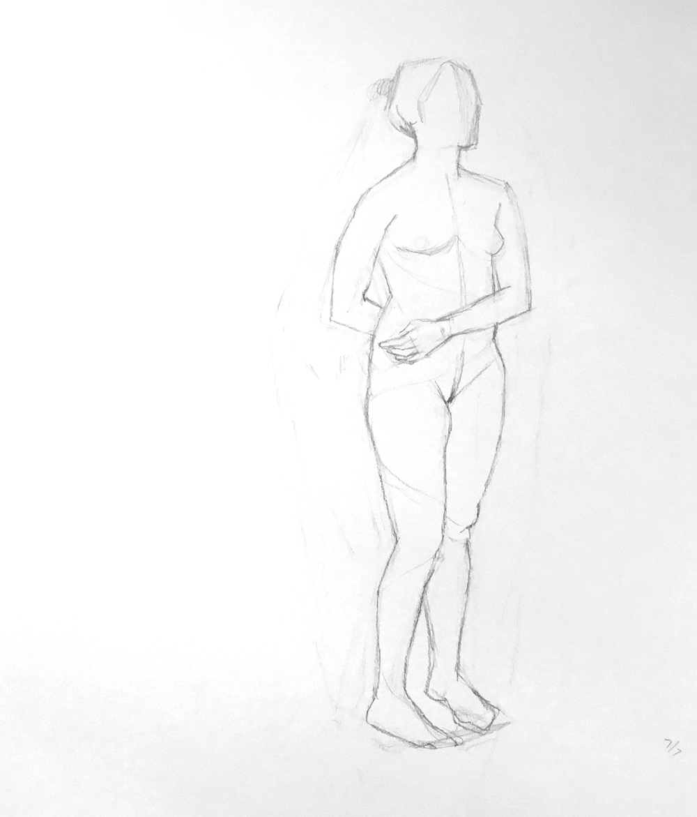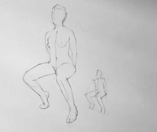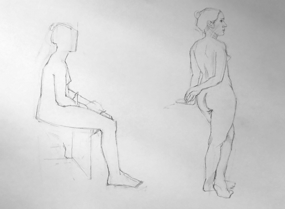 Then we moved on to "blocking-in" - much more of a natural home to me as it involves the outline! We made an "envelope" to find the composition and where we wanted the figure to go, and from that we'd whittle it down, like carving a block of stone to get to the figure.