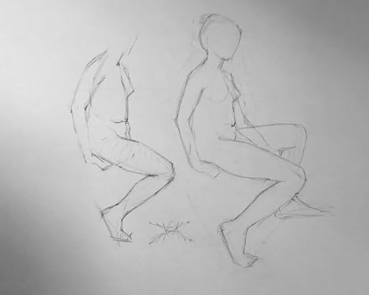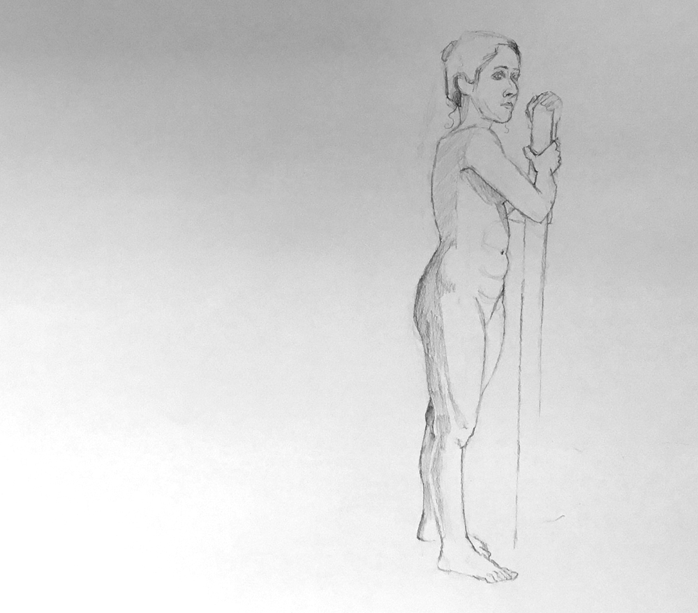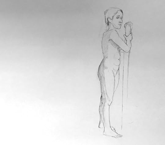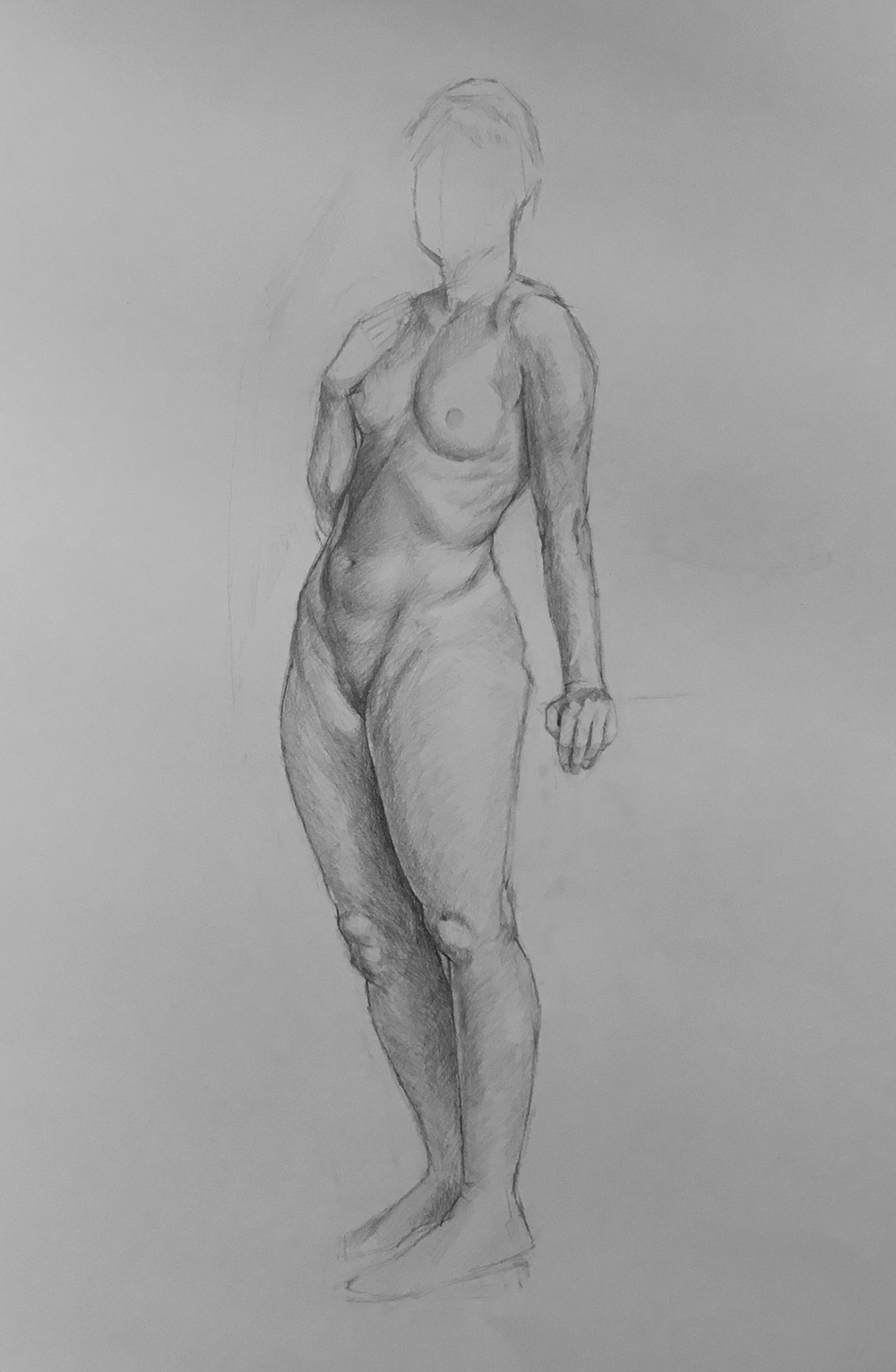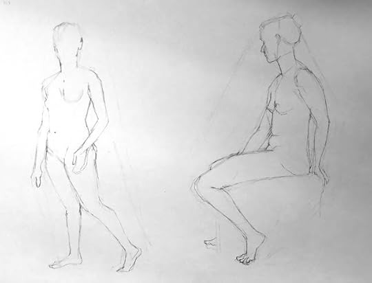 Then we moved on to "blocking-in" - much more of a natural home to me as it involves the outline! We made an "envelope" to find the composition and where we wanted the figure to go, and from that we'd whittle it down, like carving a block of stone to get to the figure.