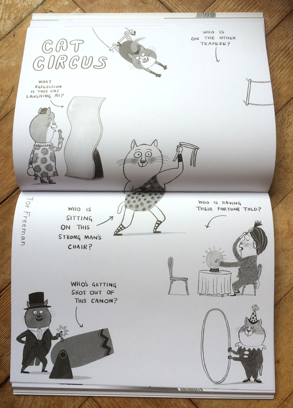 Here's my spread! A cat circus, draw in alllll the extra cats!