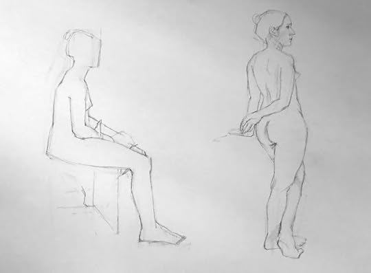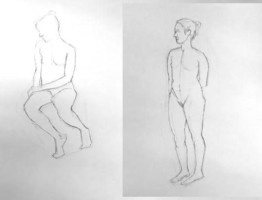 I've put my drawings in the order I made them below. I won't talk much about the techniques we learned beyond mentioning them, because I wouldn't be able to do a good job of it - but there is a book we spent some time with at the studio by Tony Ryder called The Artist's Complete Guide to Figure Drawing, which explains in detail and which I will certainly be buying!