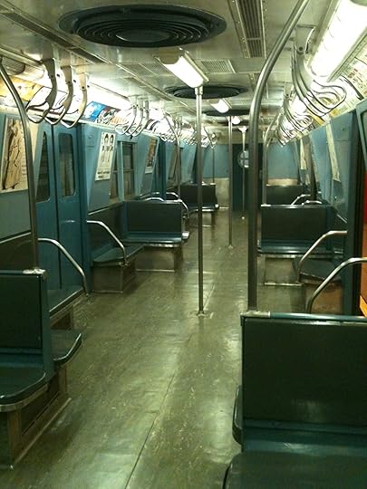“He opens his mouth to say something but the train is picking up speed as we go under the river. We glance at each other without speaking. The empty cars of the CC train rattle through the tunnel. They are gray with yellow walls, dim light, dirty linoleum and slow electric fans. They are like someone’s kitchen in a long dream. When the train pulls into Broadway-Nassau Street, the car fills with miserable people in steaming trench coats. Harry pushes out against the tide of them to transfer to the Lexington Avenue IRT.”