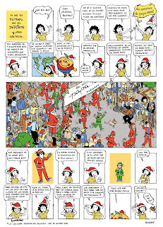 En diciembre el tema de Gigantes fue las fiestas. Esta vez hice una página de Si no es fútbol, no es deporte. Y otros pelotazos... sobre las carreras de Papá Noel, que se han popularizado bastante en los últimos años.La verdad es que tenía ganas de dibujar un wimmebilder, como cuando era chica. Hacía pila que no me colgaba así a dibujar personas. Igual, tampoco fue una escena muy grande, y la verdad es que me quedé con gusto a poco. Pero bueno, para mecharla dentro de una página de historieta estuvo bien. Creo.