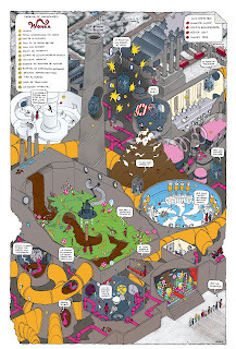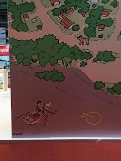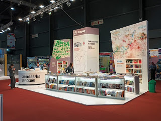 Como frutilla de la torta, el otro ilustrador al que contactaron para dibujar otro mapa fue ca_teter (♥), que ilustró a partir de la novela El cielo visible, de Diego Recoba.Así que ahí estaban nuestros dos mapas en unos tótems enormes en la feria :D