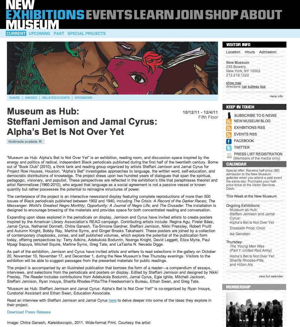 A few weeks back Steffani Jemison contacted me and asked if I'd like to contribute to her upcoming exhibit: Alpha's Bet Is Not Over Yet. I jumped at the opportunity and now that work is on display as part of her exhibit in the New Museum. Go check it out. Go check it out not because I'm a part of it, but because we need to keep the conversations about language and art and literacy and history going and going and going. Many Thanks Steffani