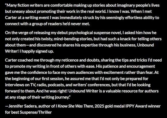 Episode 188: Matt Goldman – New York Times bestselling author and Emmy-winning TV writer (Seinfeld, among others), himself no stranger to plotting tight turns and comedic timing. Matt and I dug into how stand-up comedy sharpened his sense of timing, how he stays true to his comedic voice even when writing for legacy shows, and what relentless brevity taught him about suspense.Episode 187: Joshua Moehling – USA Today bestselling author of the Ben Packard series (And There He Kept Her, Where the Dead Sleep). In this one, Joshua shares the thrill (and terror) of quitting the day job and going full-time author—and yes, he really did make the leap.Episode 186: Traci Hunter Abramson – CIA alum turned award-winningsuspense author (Royal Intrigue, Novel Threat). We dug into how her years in intelligence shape her plots (yes, there’s a cover-board review process), why she treats writing like a day job, and how balancing family life keeps her grounded.All episodes are available on my website, my YouTube channel, and wherever you get your favorite podcasts.