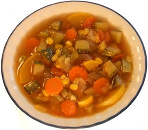 Sometimes you just get that unmistakeable craving for a hot bowl of soup. Whether you are trying to stay warm on a cold day, or just want to get rid of extra vegetables in the fridge, this soup makes a healthy lunch or dinner. Try this recipe using any of the following vegetables: onions, celery, sweet potatoes, carrots, tomatoes, zucchini, yellow squash, green beans, corn, or shredded cabbage.