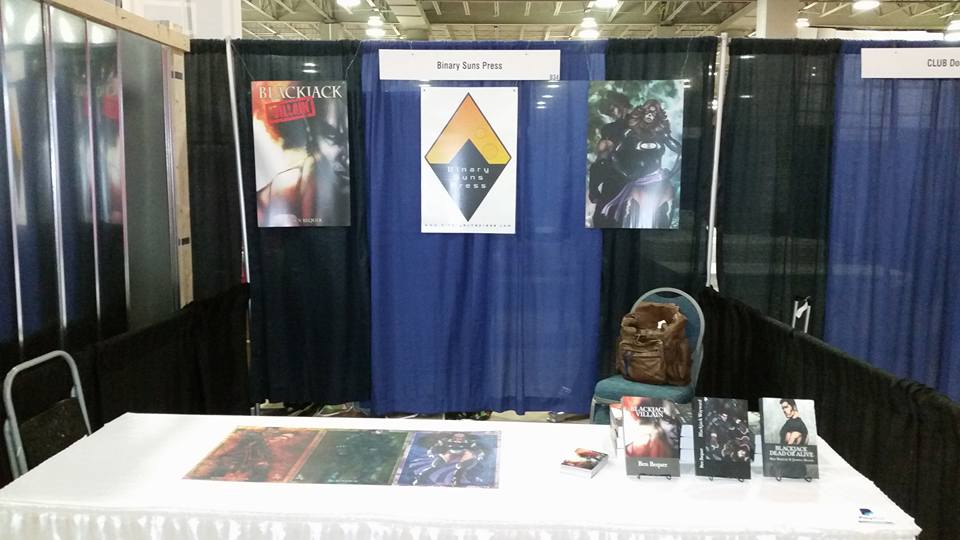 All weekend long we kept commenting how cool it would be to have more material, shorter works we could sell at a lower price. See, since the Blackjack books are huge monsters, to print them out costs a bundle. Selling them at near cost still brings the price per book to like 20 bucks. Now, I know that those thick books are pretty impressive, $20 at a con is kind of excessive. We’ve thought about it long and hard and decided to go back on the con circuit, this time with more stuff to offer. Our booth was pretty nice for first timers, too.
