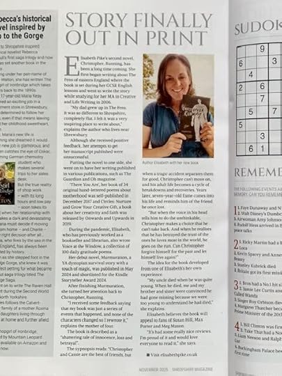 "Escape to the Fens with Elisabeth Pike’s haunting and poetic novel, Christopher Running. Rich with earthy textures and wide-open skies, the story draws you into the lives and minds of unusual characters who live close to Nature and to each other. Chr"