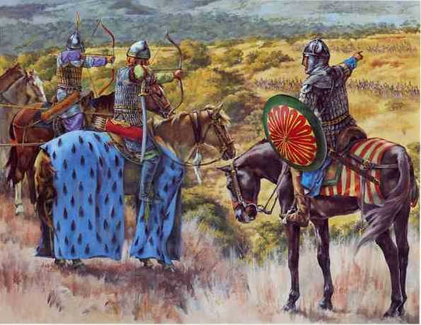 Battle of Anzen - Madrid Skylitzes The armies of Theophilus and al-Afsin met in battle at Anzen. At first the battle went the way of the Byzantines as their right wing made progress and forced their enemies back. A well timed counterattack by Afsin’s Turkoman horse archers however threw the Byzantine right wing into chaos and, thinking themselves abandoned by their emperor, they routed. Theophilus found himself isolated and retreated to a hill top protected by those soldiers of the imperial Tagmata who had not fled along with some of the troops of Theophobos. Al-Afsin brought up his siege engines to batter at the defenders who were also showered by arrows by the horse archers. The wretched Byzantines were saved by the elements as it began to rain and at last night fell. In the night they slipped away.
