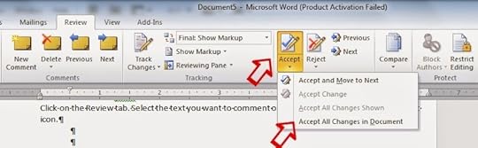 When you’re finished editing and commenting, save the manuscript as something different from the original. I tend to use something like BookTitle_edited.doc. You can send this copy to your clients so they can accept or reject any edits you’ve made. If you prefer to send a fully edited copy, then there’s more to do.