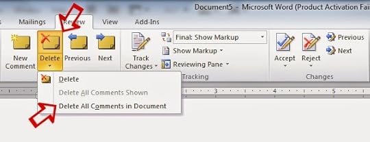 Now click inside one of the comments. Click on the mini arrow below the Delete comment icon. Choose Delete All Comments in Document. Now all the comments have been removed and you’re left with a fully edited manuscript ready for formatting.
