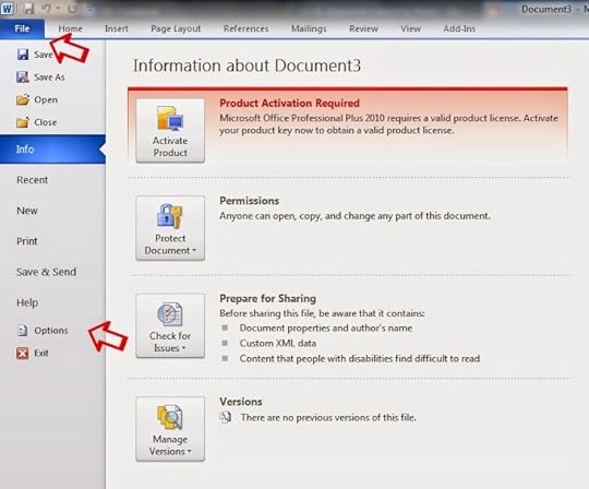 Go to File and select Options.