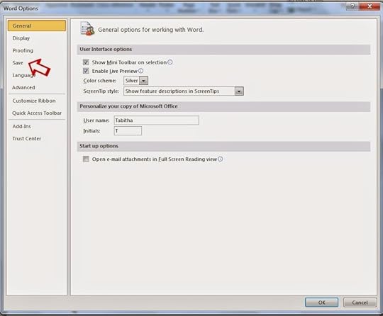 This opens the Options dialogue box. On the left side column, select the Save tab.