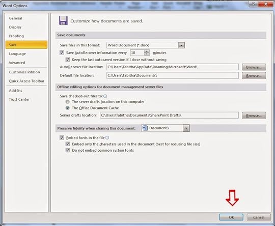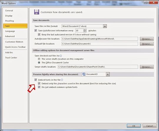 Near the bottom, check the box that says Embed fonts in the file. If you've used several fonts or the document is quite long, it might be a wise idea to also check Embed only the characters used in the document. This will reduce the file size of your document.