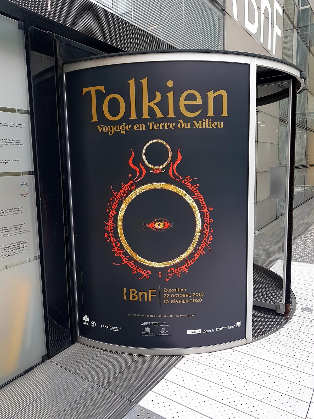 Informazioni sull’esposizione “Tolkien: Voyage en Terre du Milieu”L’esposizione è allestita nella Bibliothèque nationale de France (BnF) “François Mitterrand”, Quai François Mauriac a Parigi (Metro 14 e 6 e RER C fermata “Bibliothèque François Mitterrand”), Gallerie 1 e 2 dal 22 ottobre 2019 al 16 febbraio 2020.
