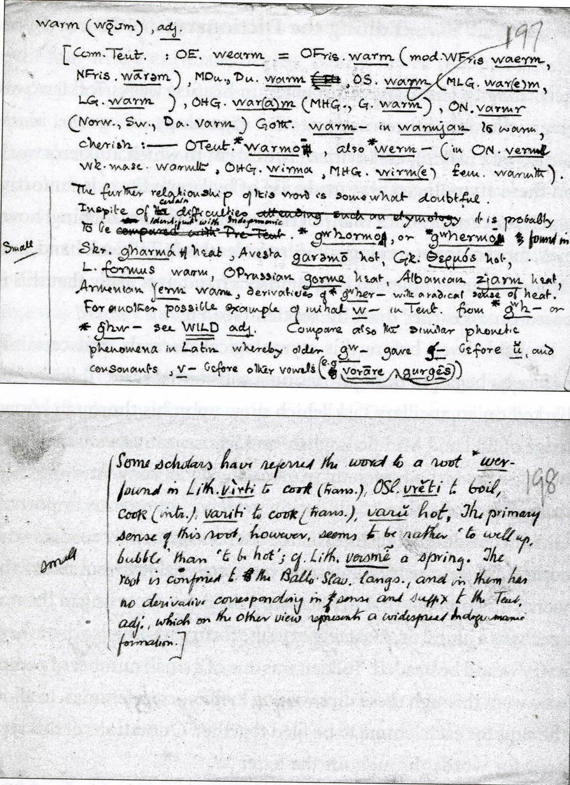 Il 16 marzo 1933, quand’era già Rawlinson and Bosworth Professor in Anglosassone all’Università di Oxford, Tolkien scrisse a Kenneth Sisam, per il quale aveva curato A Middle English Vocabulary, che era molto felice perché aveva ricevuto il set completo dell’Oxford English Dictionary.