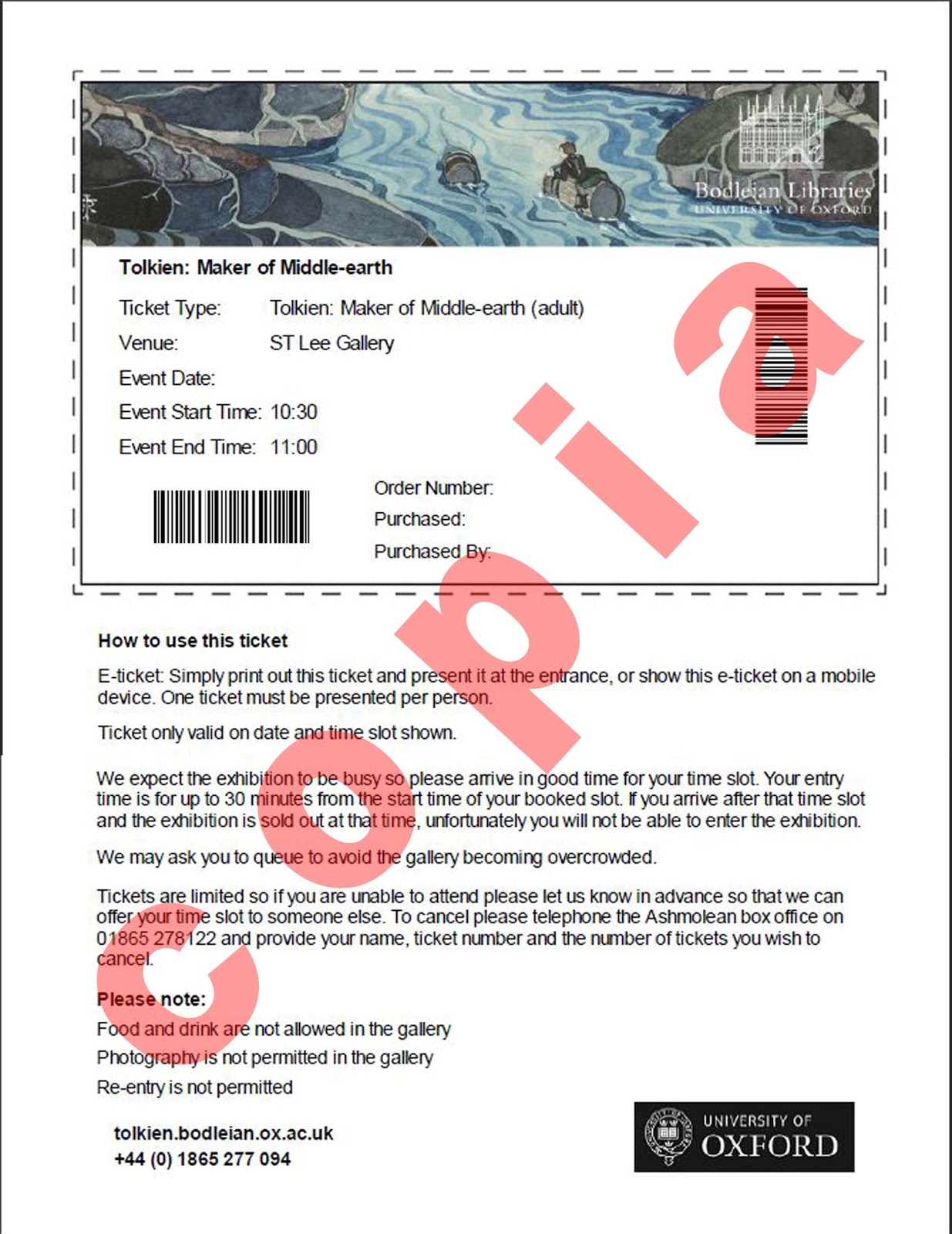 Al termine della prenotazione e relativo pagamento, la Bodleian Library invierà sull'indirizzo mail che indicherete il biglietto da stampare e presentare all'entrata dell'esposizione.