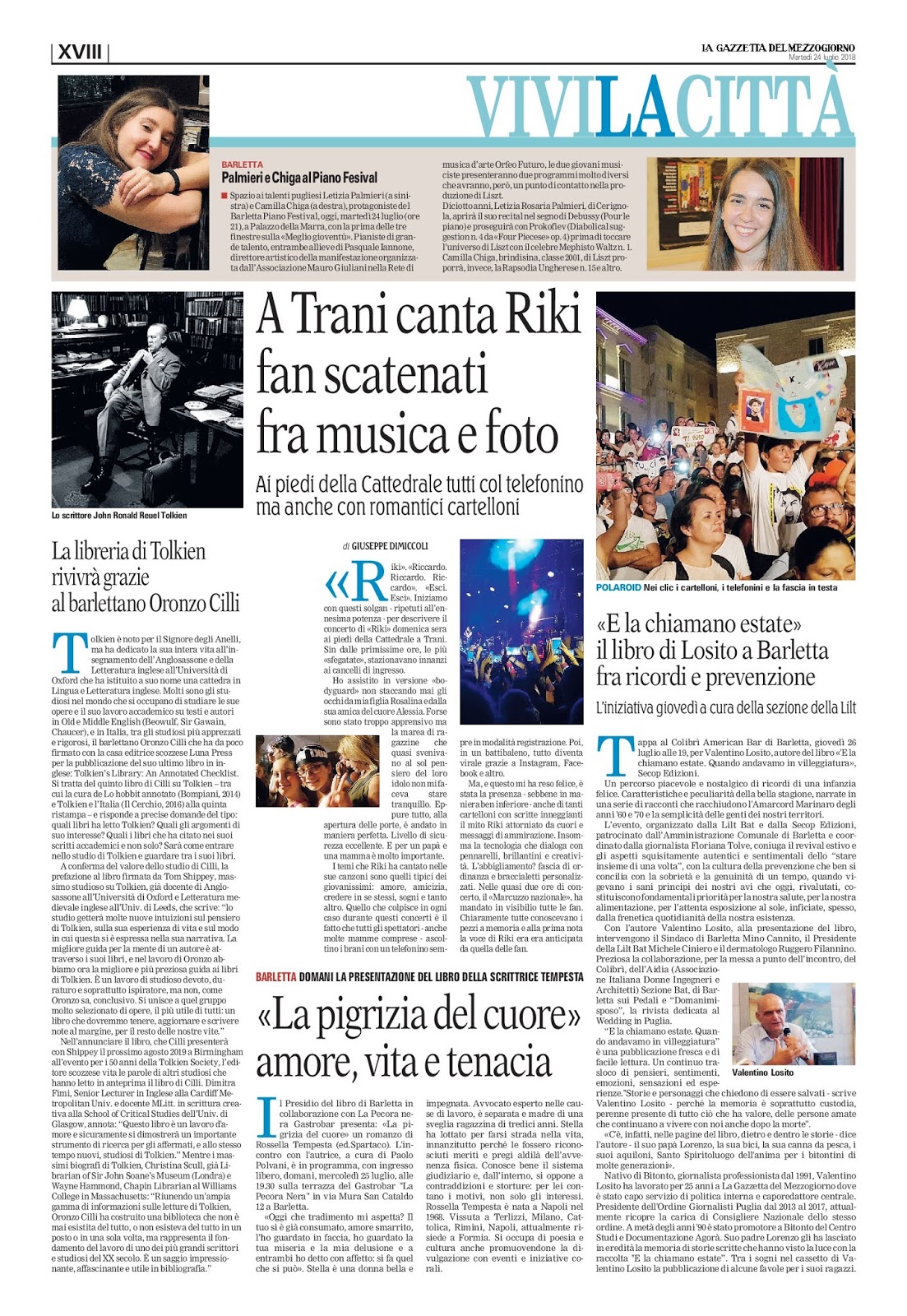 Riporto l'articolo uscito sul quotidiano "La Gazzetta del Mezzogiorno" il 24 luglio 2018 (p. xviii) sul mio nuovo libro "Tolkien's Library: An Annotated Checklist" che uscirà il prossimo anno con la scozzese Luna Press Publishing. La prefazione sarà firmata dal grande Tom Shippey.