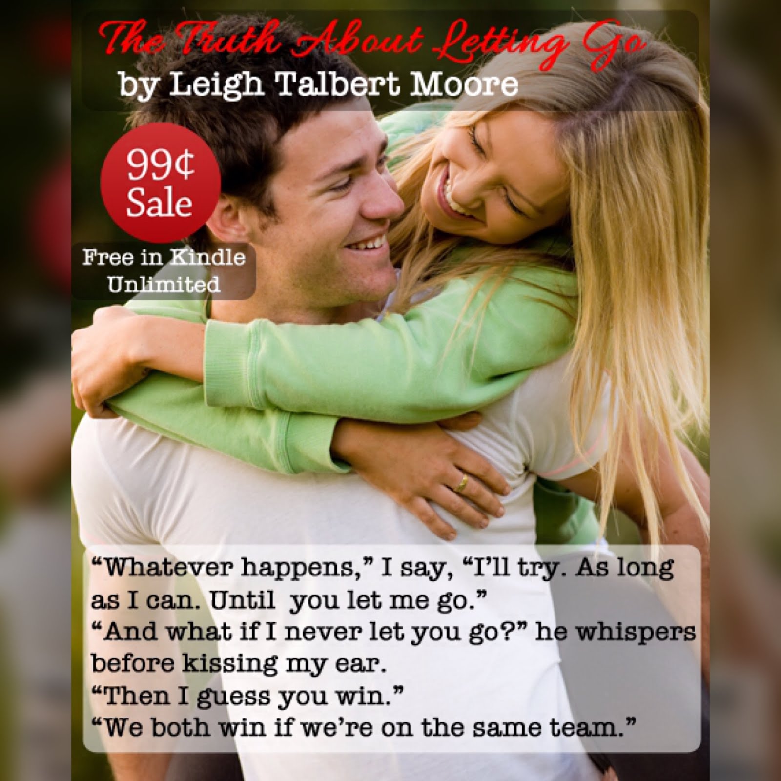 The Truth About Letting Go, is on sale for 99 Cents this week/weekend (FREE in Kindle Unlimited). It's been three years since I wrote the story, but I still remember the emotions behind it so well.