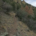 Today, with my sore left foot, I was only hoping to reach the plateau at the halfway point – the high point of the ridge at a little over 8,600 feet – for an out-and-back distance of seven or eight miles. The sky was partly cloudy and the high in town was forecast in the mid-50s.
