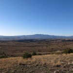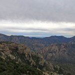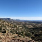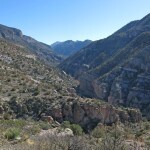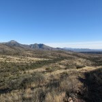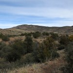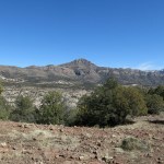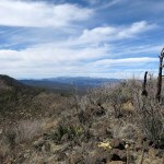 The past two Sunday hikes have also re-triggered the chronic inflammation in my left foot. With the shoulder in the foreground, I tried to ignore the foot pain. Today – in denial yet again – I decided to do a rocky hike that’s always been hard on the feet. It starts out easy enough, heading up a long valley toward the foot of the mountains, but then it climbs a set of rocky switchbacks to a saddle, where you enter another watershed hidden from the outside and traverse the back of the ridge toward a big canyon. I’d avoided this hike for almost three years, so my memory was rusty and I just focused on the positives: that view of the interior, and the pine park which would be today’s destination.