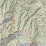 The first half of the trail, up the long valley, is completely different from the trail shown on every available map. This turned out to be important because it made my hike a mile-and-a-half longer than expected.