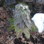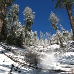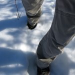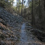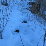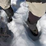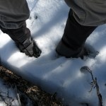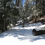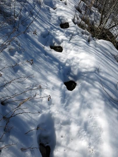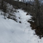 A hundred yards in, where the snow got deeper, the woman and the dog had turned back. Past there, the deeper snow, laid down in January, had been tracked by one bigger hiker, then their tracks had been smoothed by last week’s additional snowfall. Since much of the trail is in perpetual shade, the surface was packed and walkable in the morning, but I knew that on my return in the afternoon much of it would’ve melted and be trickier.