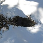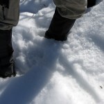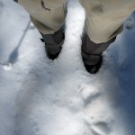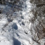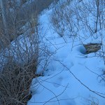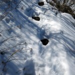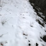 For the first few hundred yards the snow was only a few inches deep and packed by a confusion of tracks, but after that, it was only Bigfoot, with a stride length of a meter – more than a yard. What human can stride like that in deep snow? The only animal out here that approaches that stride is a bull elk, with from two to three feet between tracks – and this was longer than that. What are the chances that an elk would stick to a man-made trail, back and forth across the crest, for three miles? And I saw no elk droppings all day.